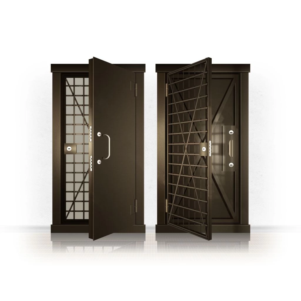 Металлические двери КХО и КХН представляют собой входные блоки, обладающие высоким уровнем взломостойкости и состоят из трех основных элементов: усиленного каркаса, сплошного металлического полотна и решетчатой двери. Дверной блок изготавливается из стального уголка 100*100 мм. Места крепления блока к стене цементируются и закрываются стальными наличниками шириной 40 мм. Крепеж заходит вглубь стены на 80 мм. В конструкции внешней створки монтируются ребра жесткости, для обшивки используется сталь толщиной не менее 3 мм. Внутренняя решетка изготавливается из прутка диаметром 16 мм. Размер ячеек решетки должен составлять не более 15 на 15 см. В точках пересечения прутья надежно приваривают друг к другу. В КХО и КХН необходимо поддерживать определенную температуру и влажность. Для этого внутреннее пространство глухой двери заполняется теплоизоляционным материалом, а по периметру двери приклеивается уплотнитель. Такие двери оборудуются замками с повышенным уровнем взломостойкости. Специализированные двери КХО и КХН в Чехове могут быть оснащены сигнализацией, в конструкции могут быть проушины для навесного замка и элементами для опечатывания. Если идет речь о двери в комнату хранения оружия, в створке оборудуется окно для выдачи оружия и спец. средств, которое накрывается стальной дверцей.