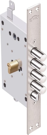 Корпус замка Рубин 1.08.21 с тягами для бронированных и металлических дверей усиленной конструкции. 4 класс безопасности. Имеет уникальную защиту от выбивания цилиндрового механизма. В случае выбивание цилиндрового механизма срабатывает защитный внутренний элемент, блокирующий засов замка в закрытом положении. Таким образом дверь остается закрытой и злоумышленник не может попасть внутрь. В корпусе замка есть отверстия под стяжные винты для крепления дверной ручки к корпусу замка. Также в корпусе замка предусмотрены отверстия для установки различных видов броненакладок.